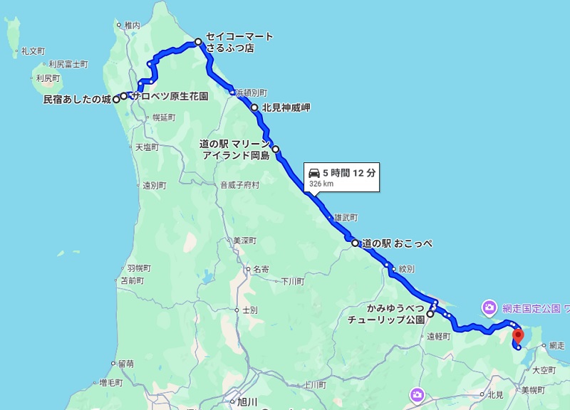 オホーツク側に出て南下しよう。